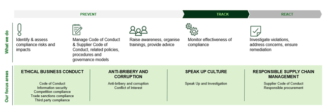 At Assemblin Caverion Group, business conduct and corporate culture are guided by applicable legislation and regulations, sustainability commitments, corporate values and group-wide governing documents. We are committed to acting in an ethical way and conducting business with integrity and honesty. We strive to foster a corporate culture where our employees and business partners are encouraged to do the right thing and to voice their concerns when they suspect unethical behavior or non-compliance. We see our ethics and compliance work as an important part of our company’s sustainability agenda. It is a key part of our efforts to combat the negative impacts of corruption and other unethical business practices on people, society and the environment.